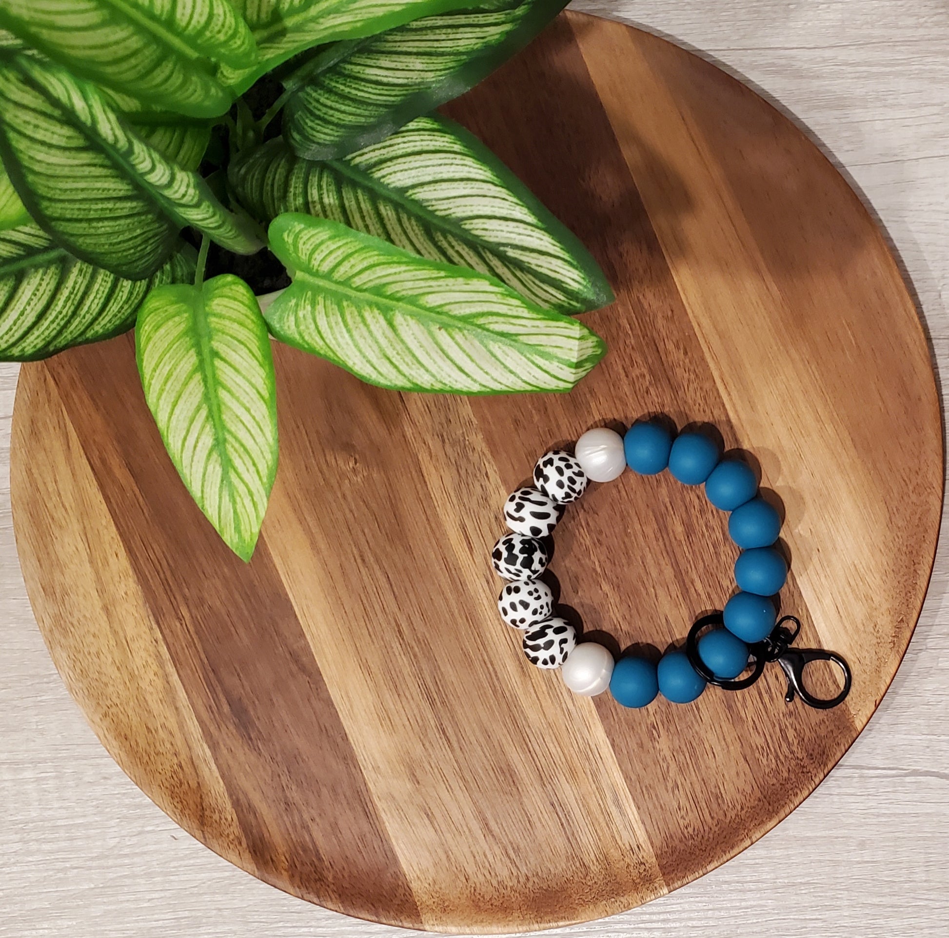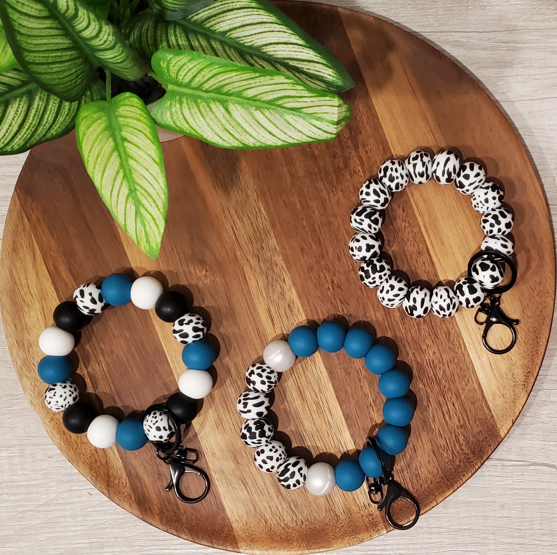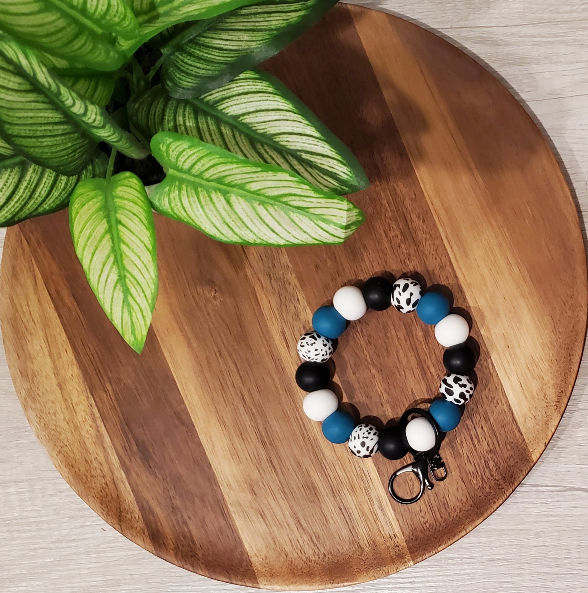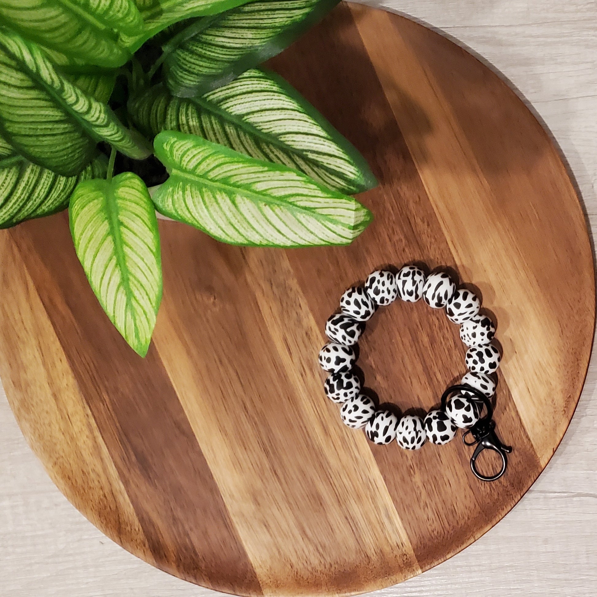 This wristlet features 19mm silicone beads assembled with a durable nylon cord, making it perfect for keeping track of keys, attaching to backpacks, or accessorizing purses.