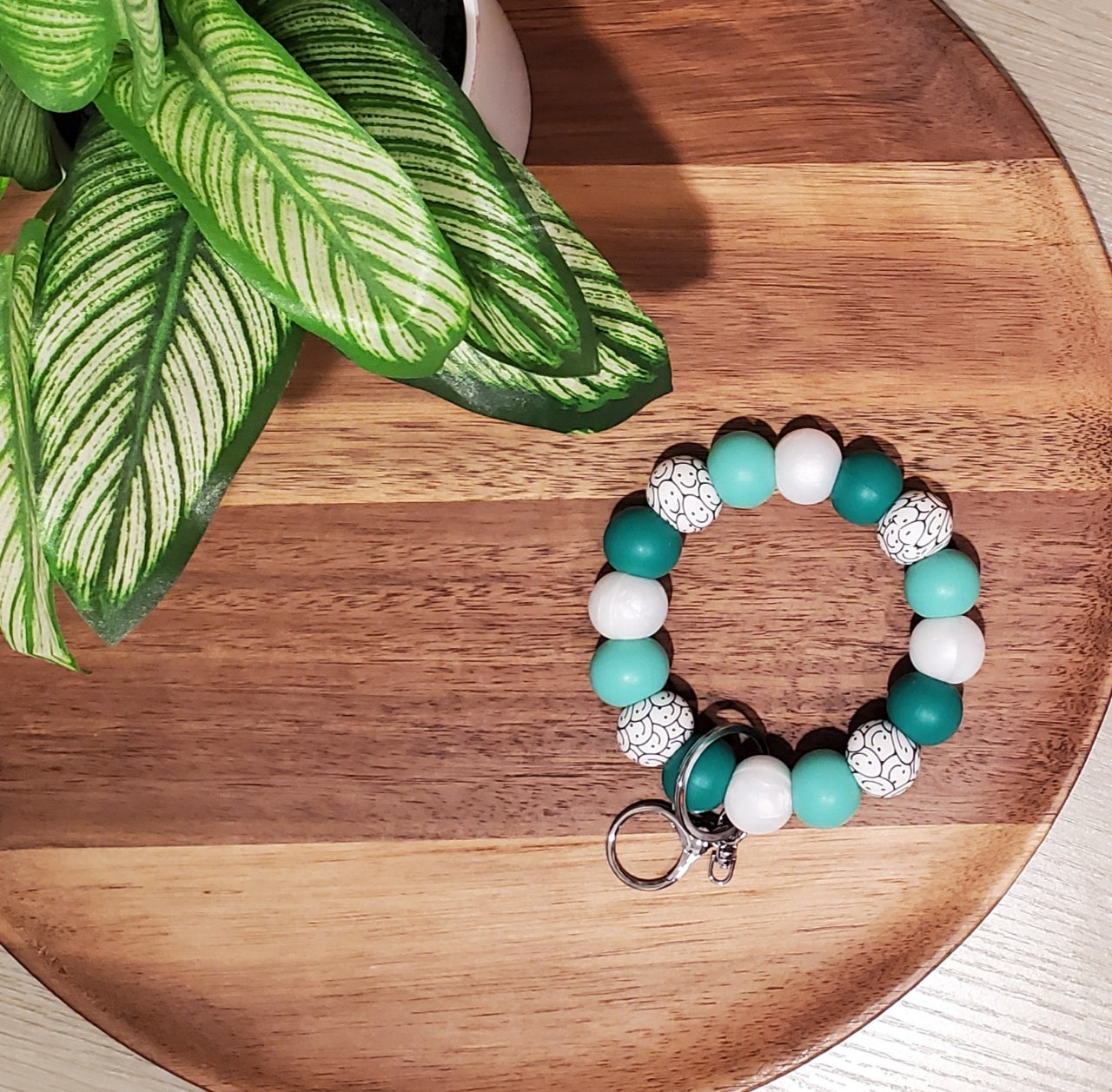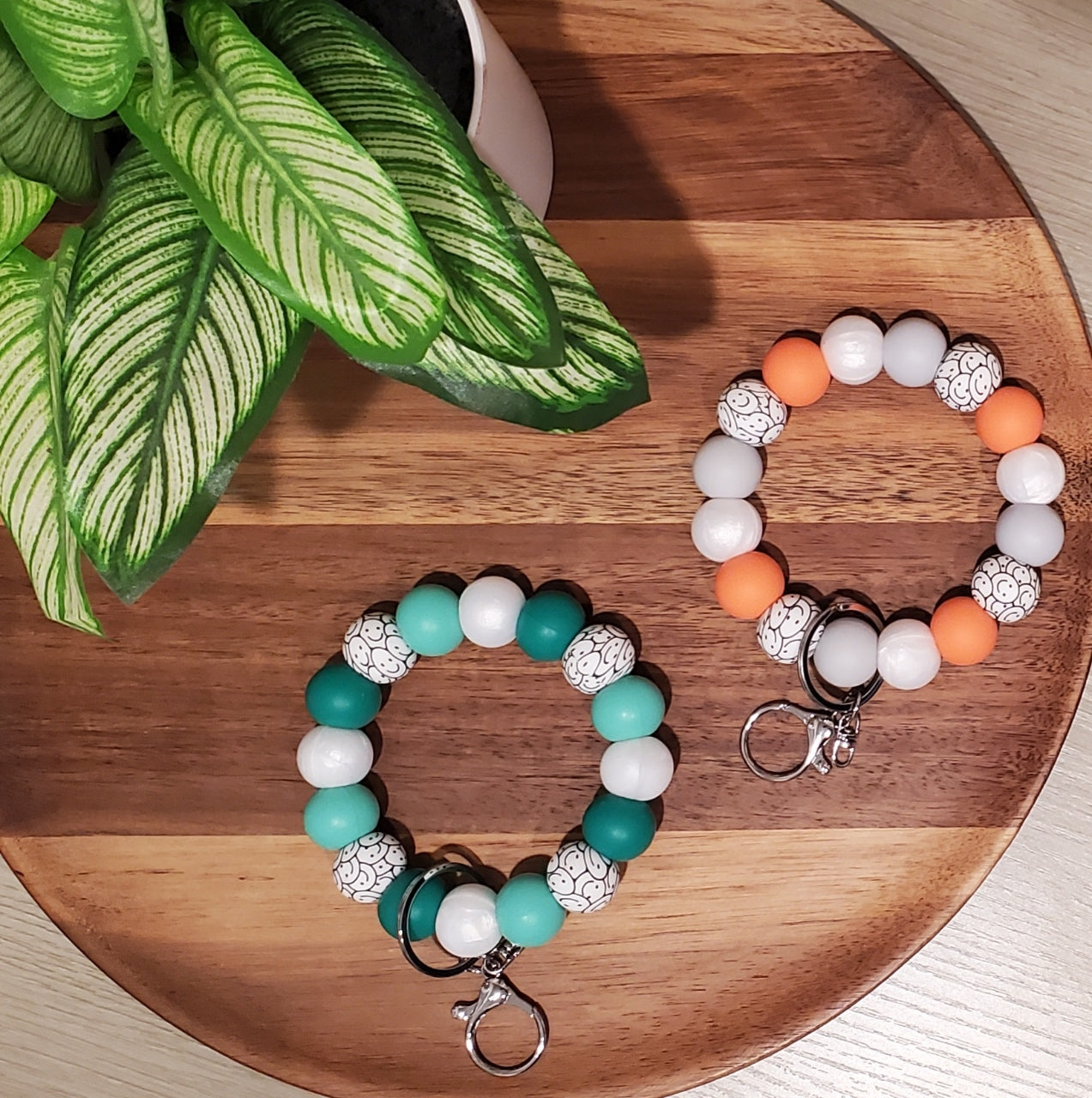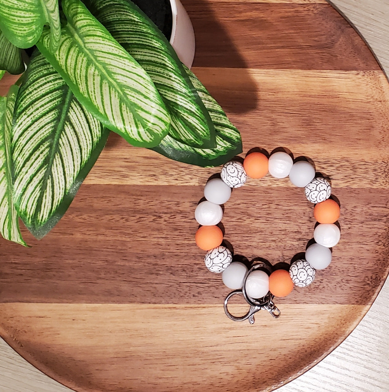 This wristlet features 19mm silicone beads assembled with a durable nylon cord, making it perfect for keeping track of keys, attaching to backpacks, or accessorizing purses.