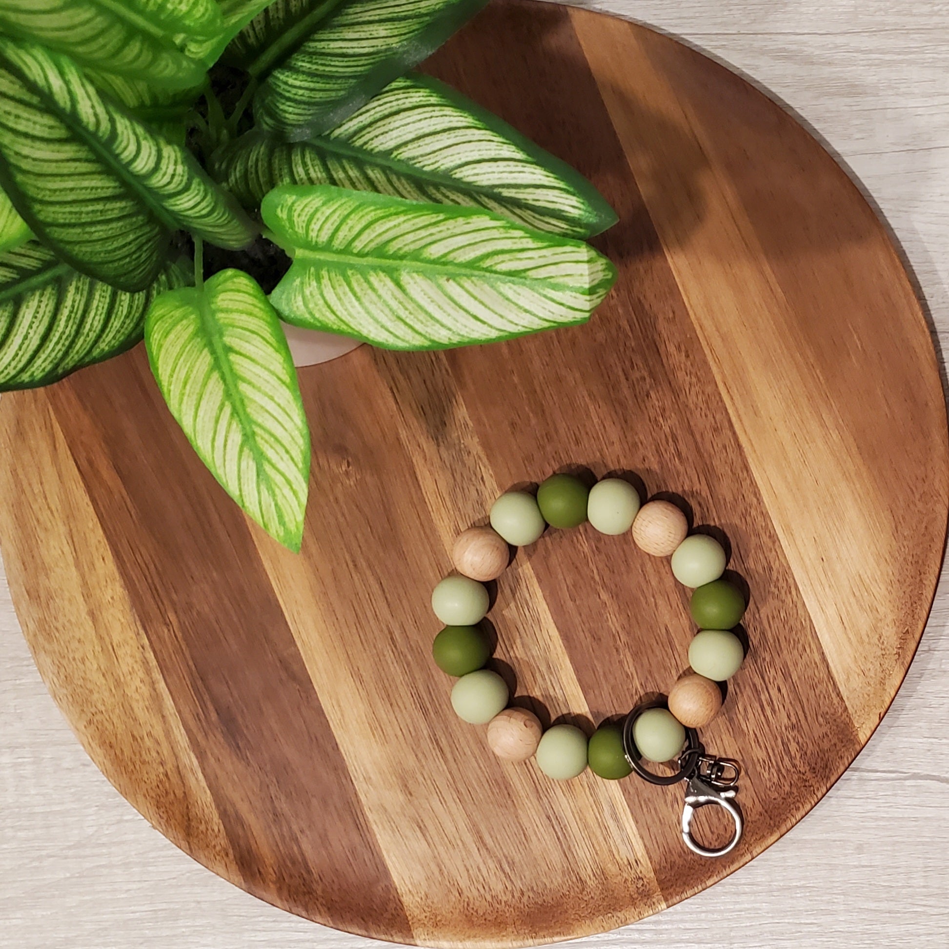 This wristlet features 19mm silicone beads assembled with a durable nylon cord, making it perfect for keeping track of keys, attaching to backpacks, or accessorizing purses.