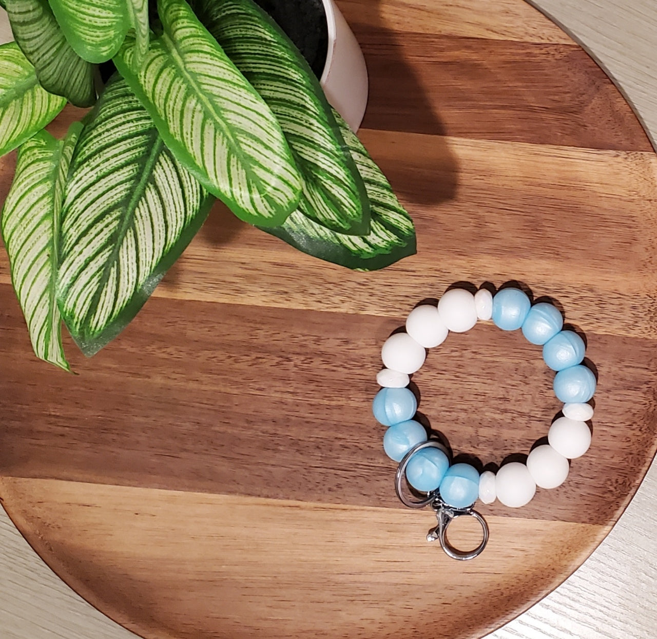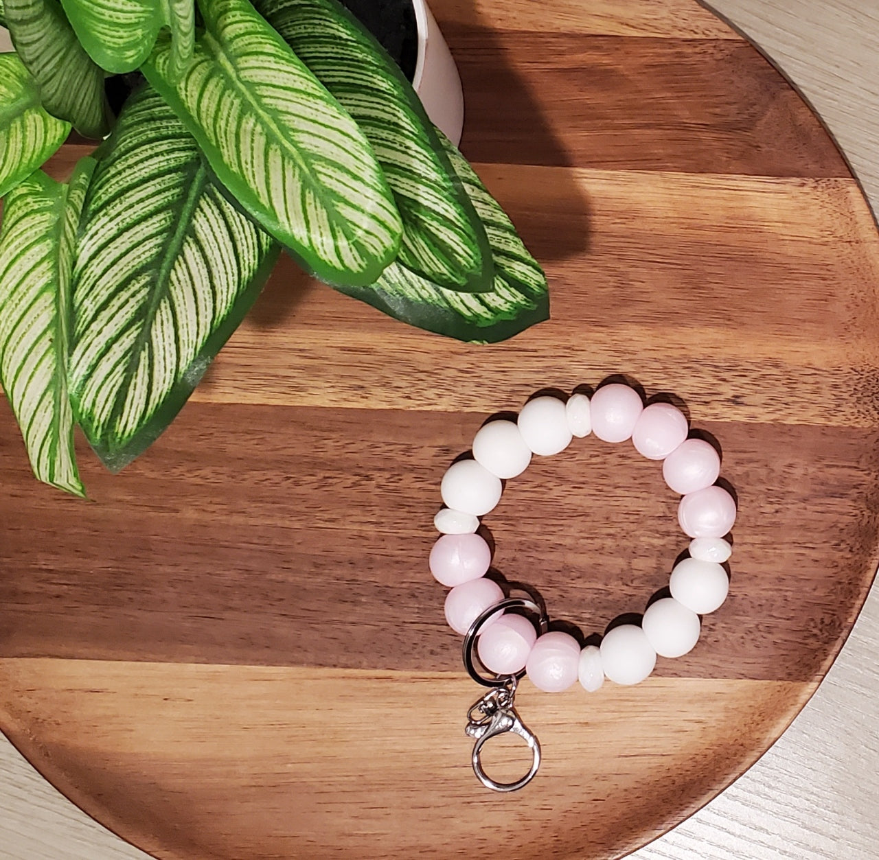 This wristlet features 19mm silicone beads assembled with a durable nylon cord, making it perfect for keeping track of keys, attaching to backpacks, or accessorizing purses.