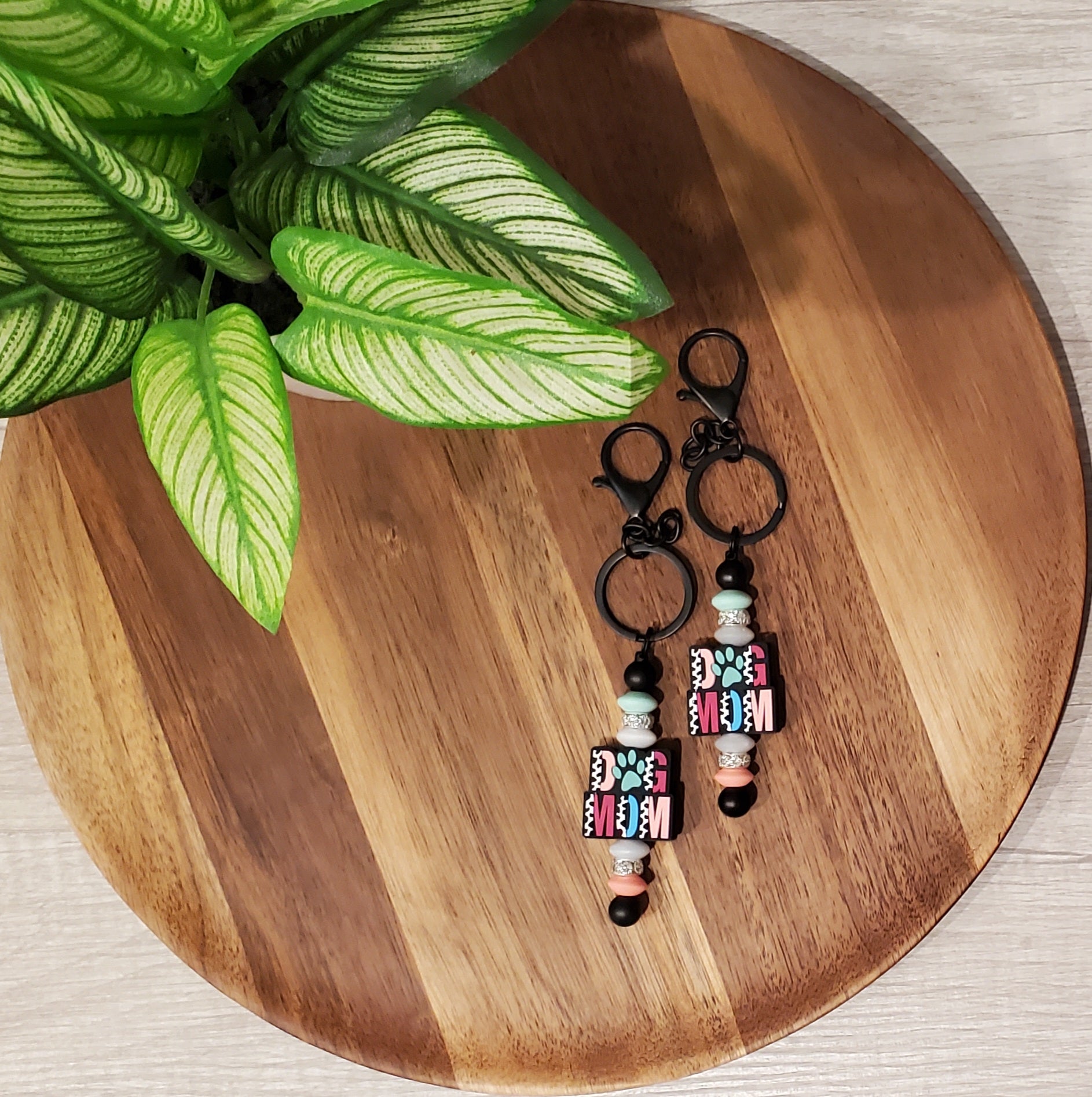 This 4.5" keychain is made with silicone beads and a durable metal bar keychain, making it ideal for keeping track of keys, attaching to backpacks, or accessorizing purses.