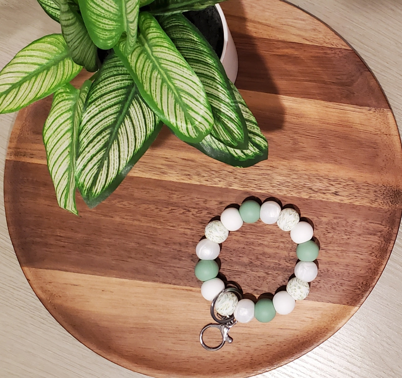 This wristlet features 19mm silicone beads assembled with a durable nylon cord, making it perfect for keeping track of keys, attaching to backpacks, or accessorizing purses.